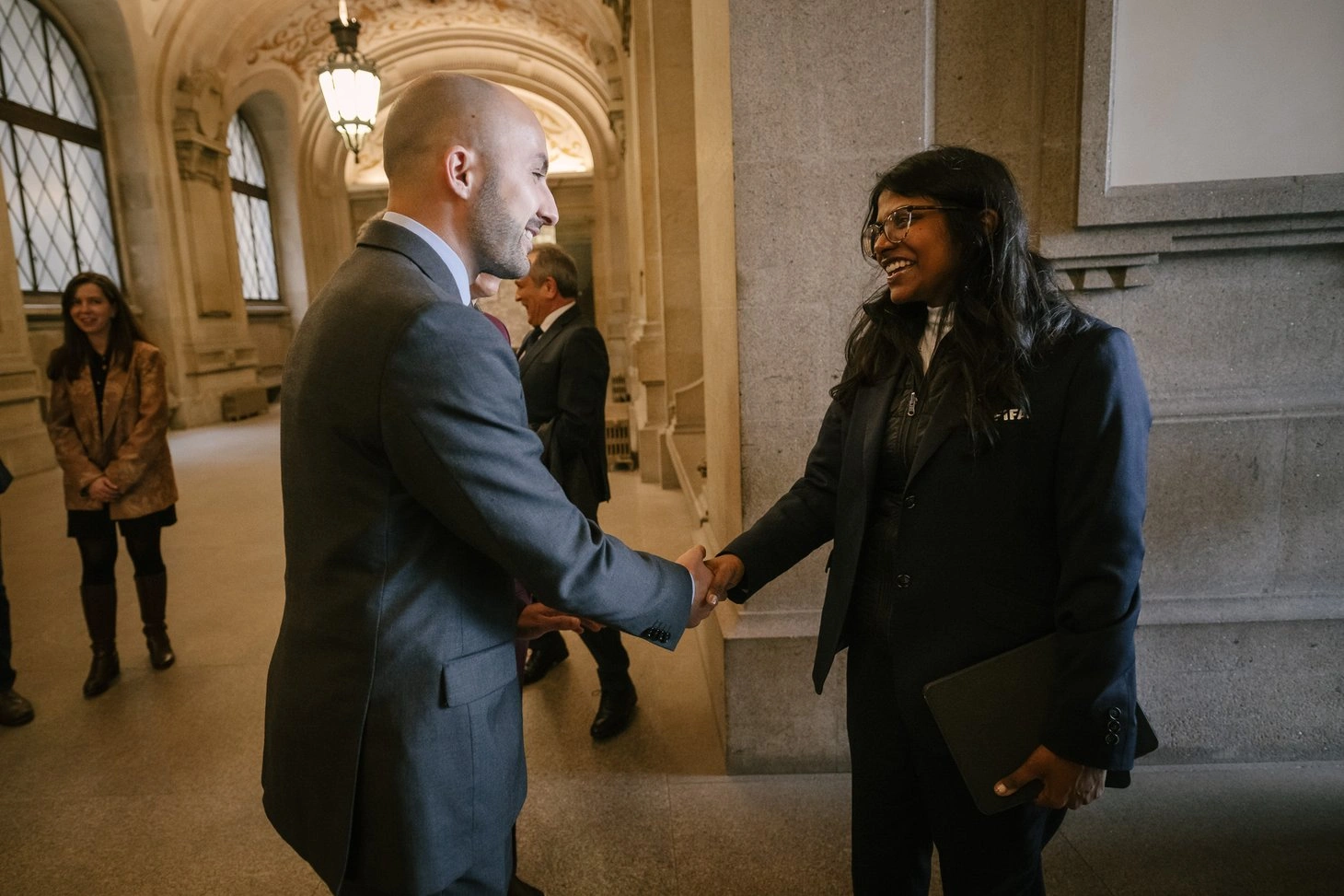 Acompanharam a comitiva da FIFA Duarte Lopes, em representação da Secretaria de Estado do Desporto, e António Laranjo, diretor executivo da Federação Portuguesa de Futebol e coordenador da Comissão de Candidatura ao Mundial 2030.