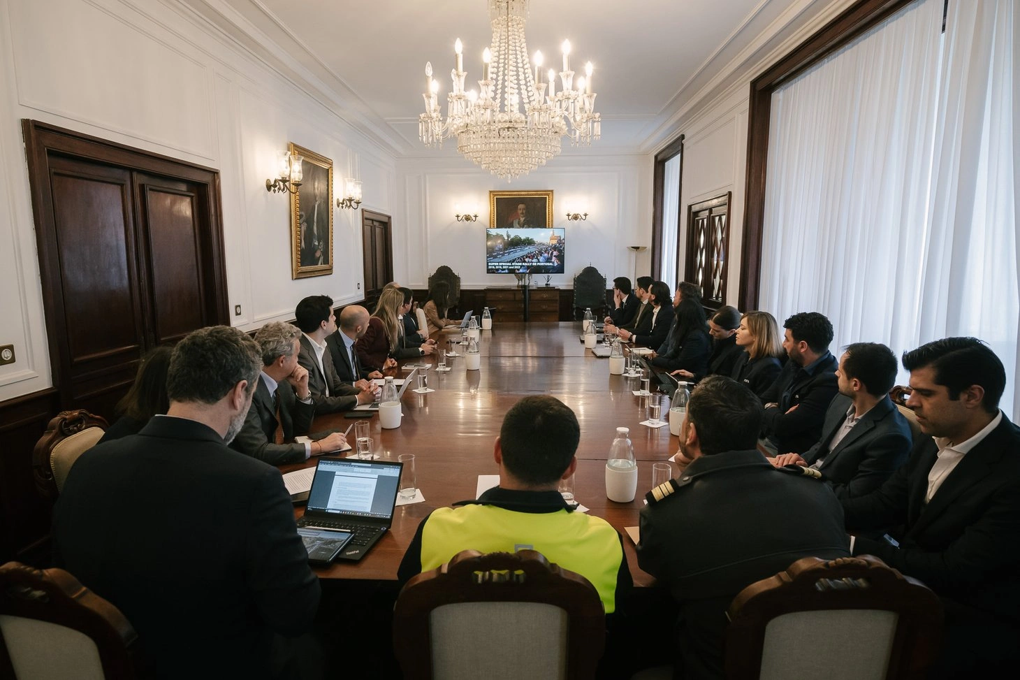 Tomaram, igualmente, parte na reunião a Polícia Municipal, a Proteção Civil, responsáveis municipais nas áreas da mobilidade, turismo e comunicação, assim como da empresa municipal Ágora. Dos Paços do Concelho, a comitiva dirigiu-se ao Estádio do Dragão.