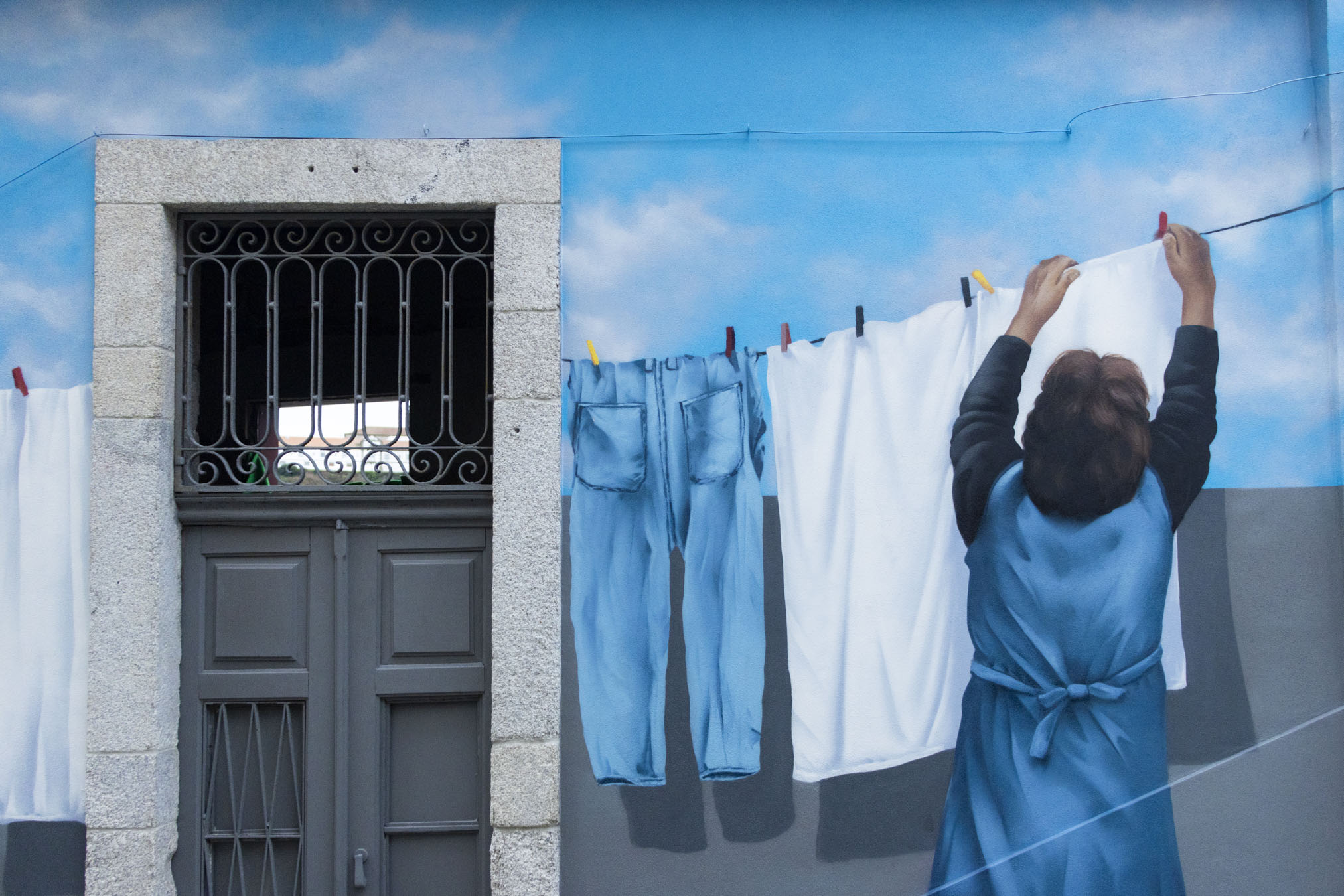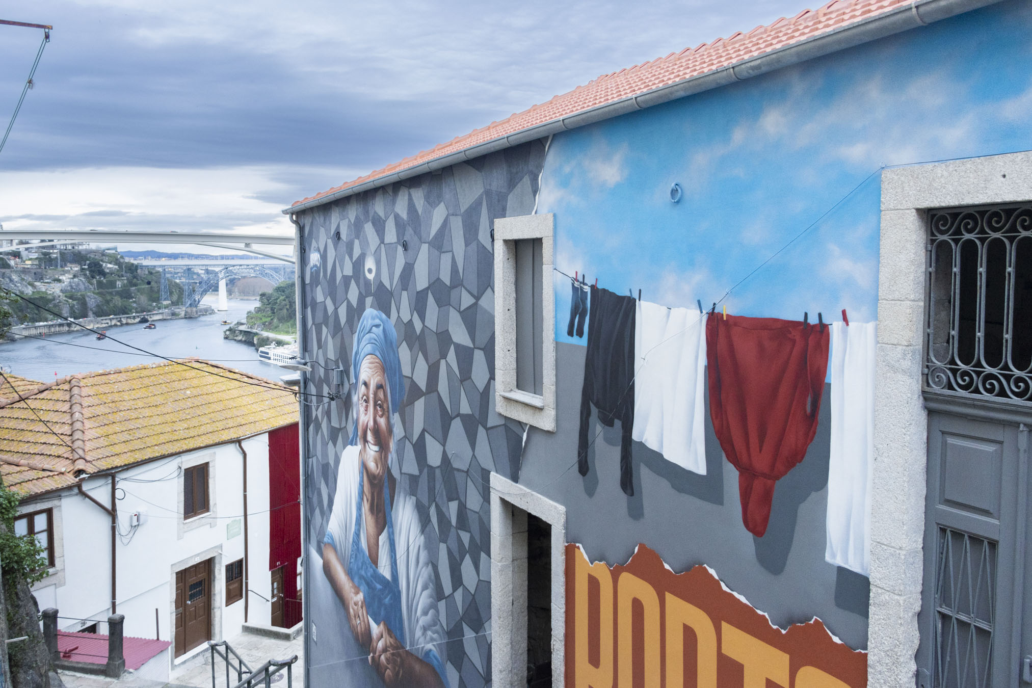 Com vista para o Douro, há um novo mural de arte urbana que eleva, ainda mais, o hábito do ser portuense. Entre alguém que estende a roupa, de forma alinhada, até à evocação da flor típica da cidade, o desafio deixado a MrDheo era livre: “na escadaria dos Guindais, podes pintar o que quiseres”. E ele assim o fez: pintou, pintou, pintou, mesmo com a chuva de inverno.