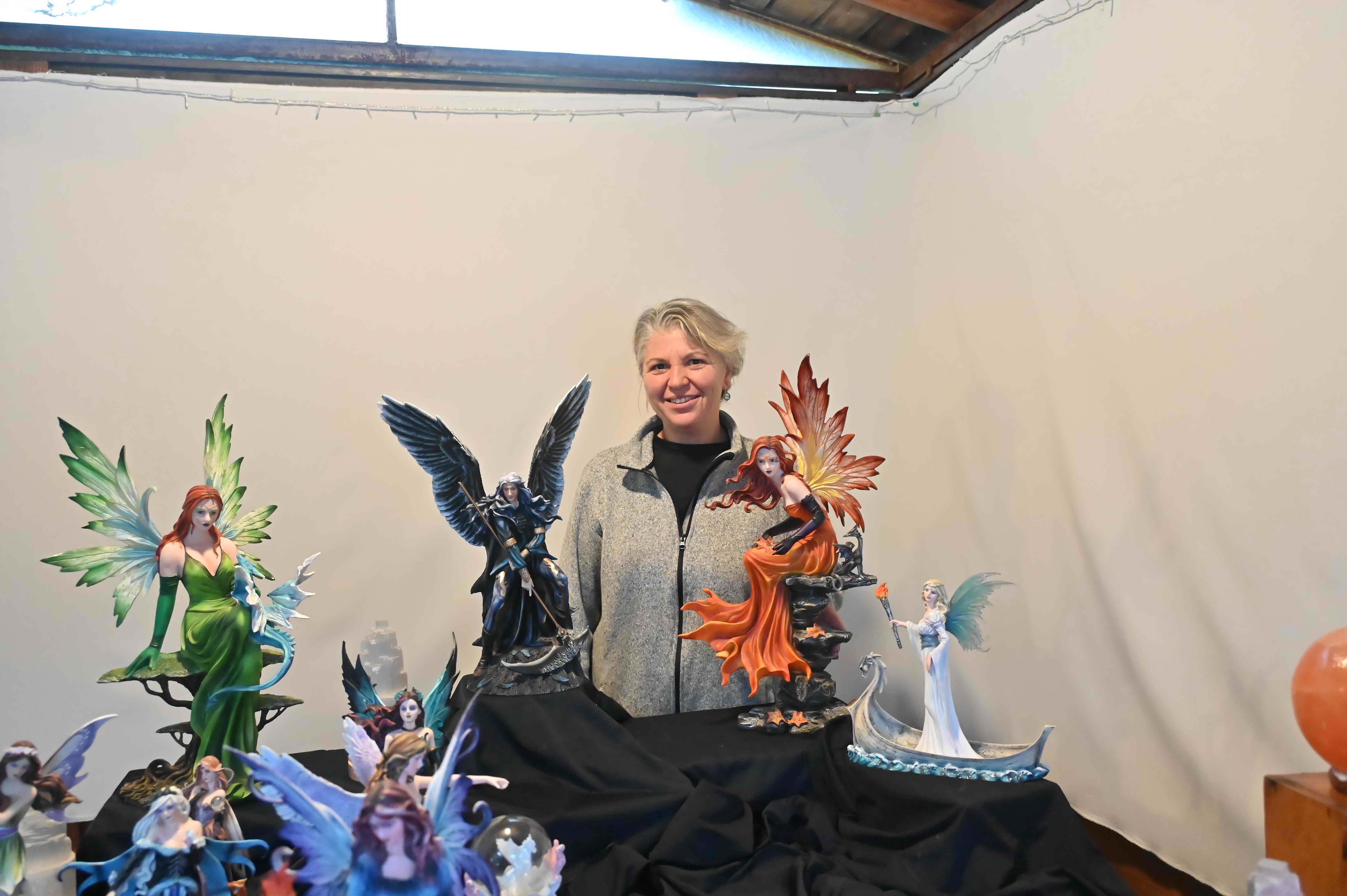 Em cima da banca há objetos com diferentes formatos, mais ou menos conectados com a época festiva que atravessamos. Há figuras míticas (“e místicas”) com diferentes simbologias, “anjos bons e anjos maus”, todos com um significado muito especial.