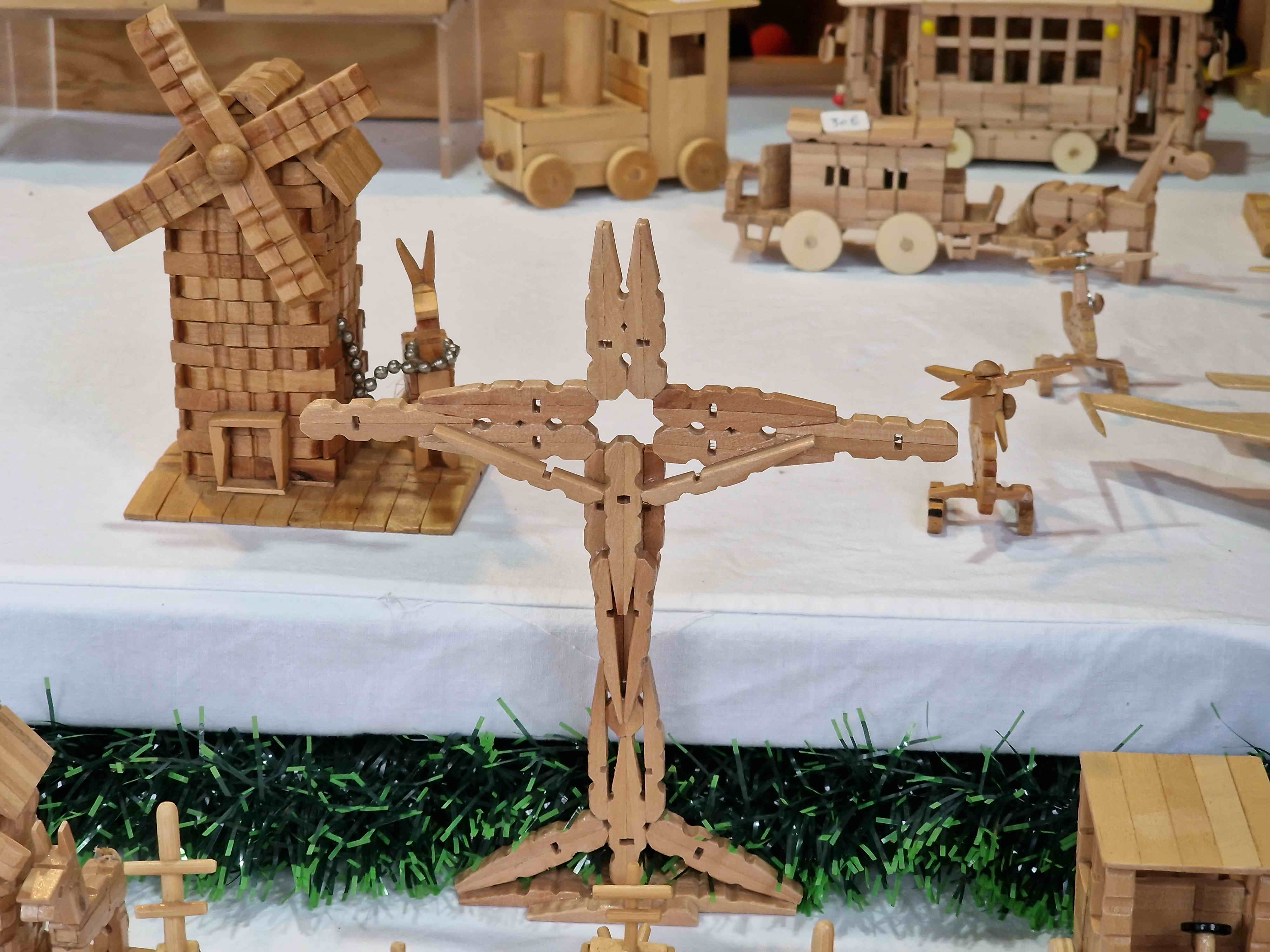 Ao lado, Fernando prefere trabalhar ao invés de “perder tempo” em conversas. As obras que expõe são da sua autoria, verdadeiras “relíquias” com paus de gelado e molas de madeira. “São presépios, carros de bombeiros, carrinhos de corrida e até um farol”, feitos com objetos do dia a dia.